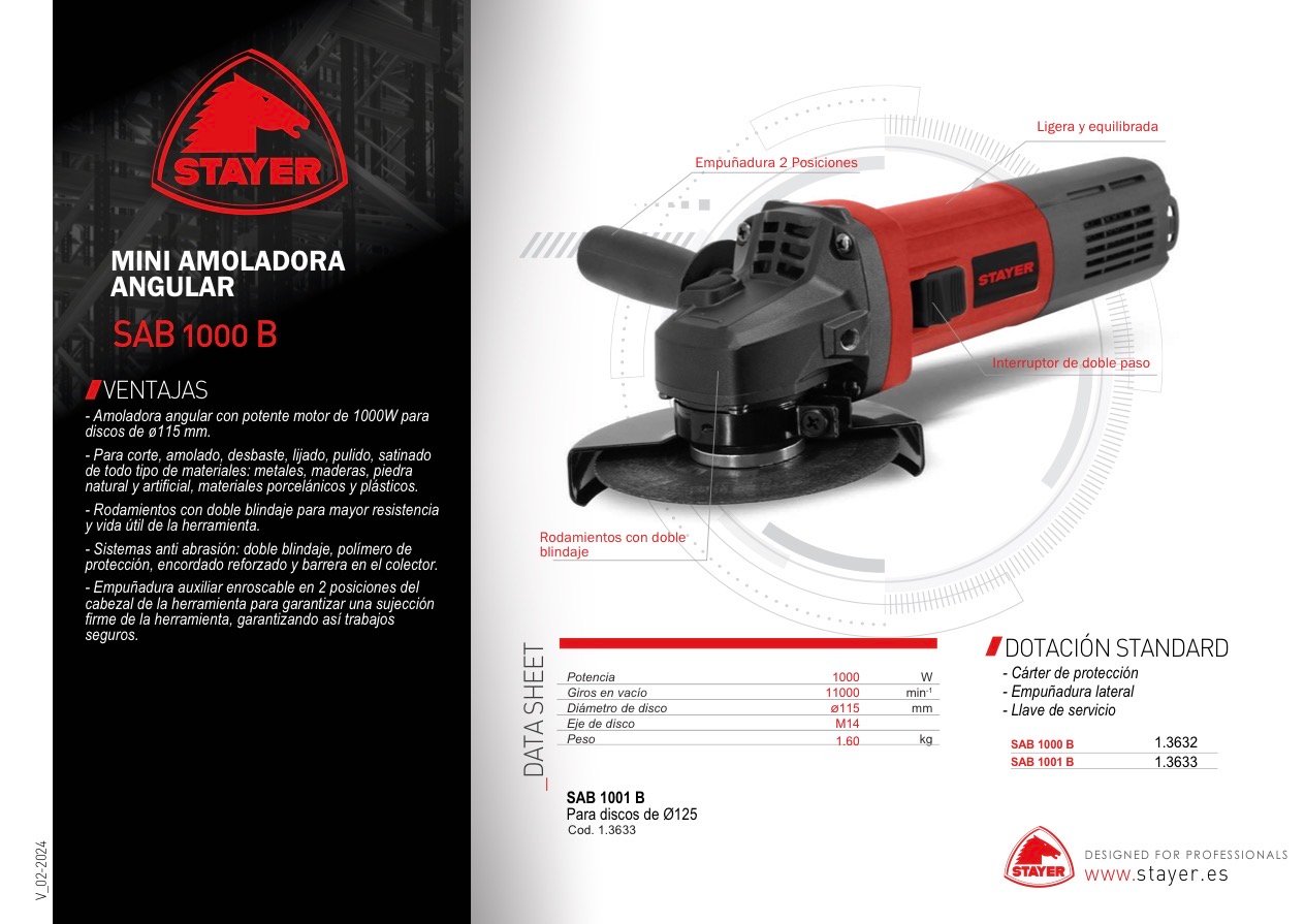 Amoladora angular Stayer SAB 1000B 1000W perfecta para todo tipo de trabajos. Con su gran potencia asegura un trabajo muy eficaz y preciso.