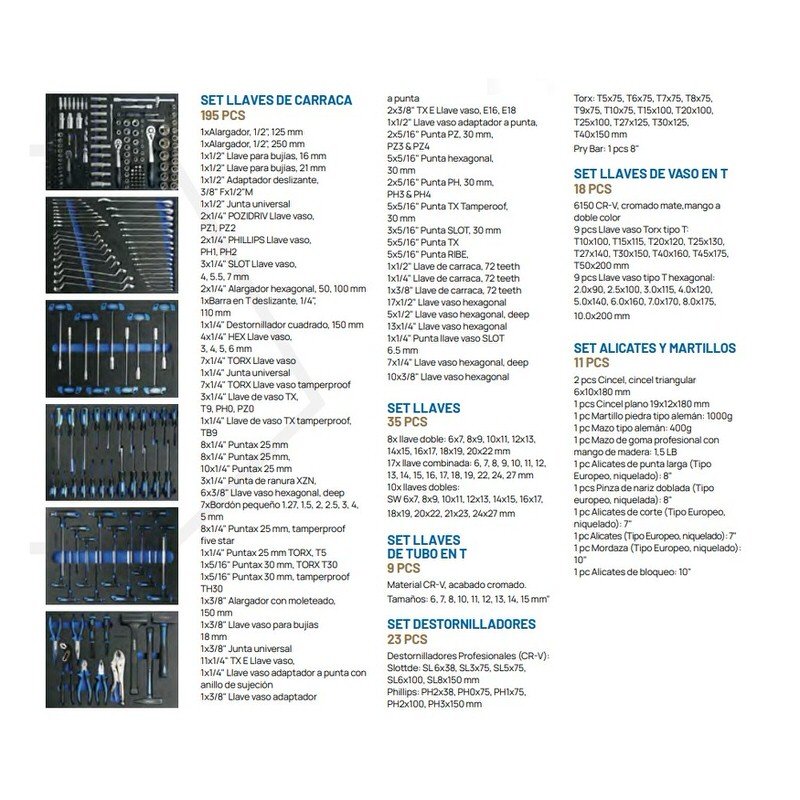 - Cajón 1: SET DE LLAVES DE CARRACA (195 piezas)