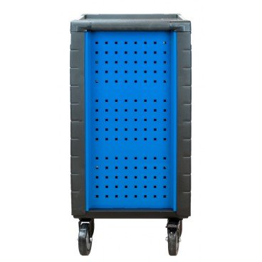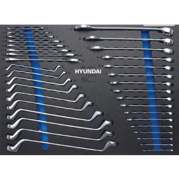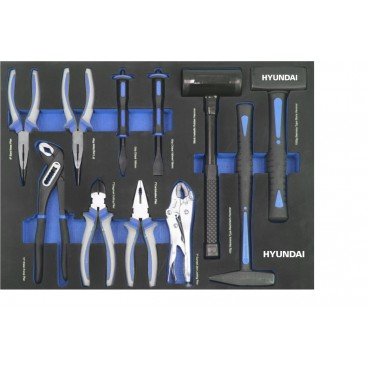 Carro de herramientas marca hyundai con unas dimensiones de 75x49x82 cm y pesa 80,4 Kg, equipado con 292 piezas en acero cromo-vanadio. Tiene una bandeja superior en acero inoxidable, 7 cajones, 6 bandejas, asa de transporte y cierre con llave fabricada de acuerdo al estándar de 72 dientes, además de 1/2″ y 1/4″ y ruedas para su fácil transporte. Accesorios: soporte botellas, soporte documentos y soporte papel.